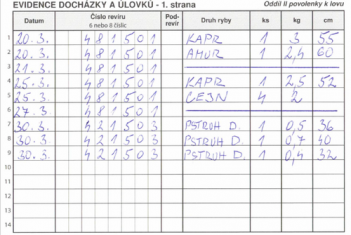 Vzhledem k častým dotazům a opakujícím se chybám při zapisování revírů a úlovků do povolenky k lovu ryb bychom rádi připomněli základní pravidla. Správné vyplňování povolenky je nejen povinností každého rybáře, ale také důležitým nástrojem pro evidenci a řízení rybářského hospodaření. Jak tedy správně postupovat?