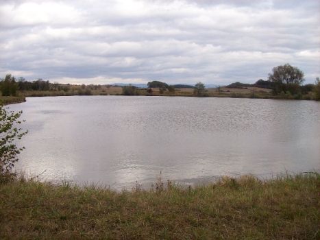 Nově vybudovaný ekologický rybník západně od města Třebechovice.