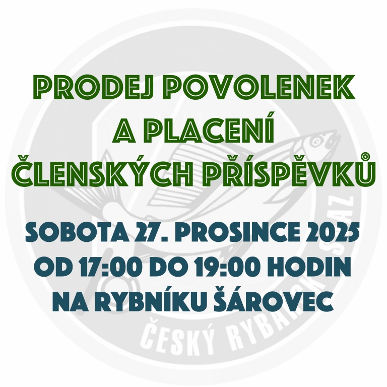 DALŠÍ TERMÍNY PRODEJE POVOLENEK A PLACENÍ ČLENSKÝCH PŘÍSPĚVKŮ NA ROK 2026