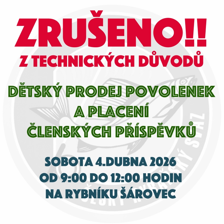 Prodej povolenek 4.4.2026 - POZOR ZRUŠENO!!