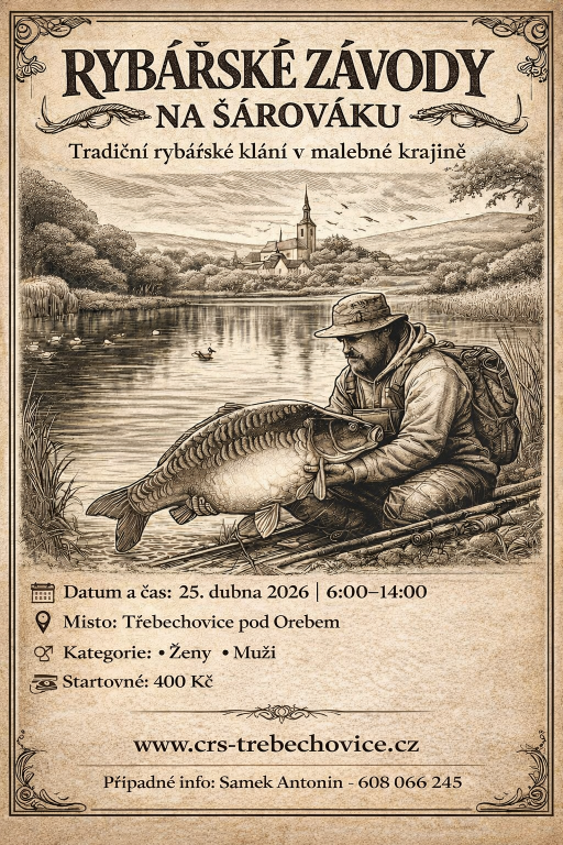 pořádá v sobotu 25.4.2026 na rybníku Šárovec v Třebechovicích pod Orebem