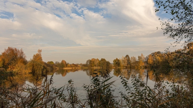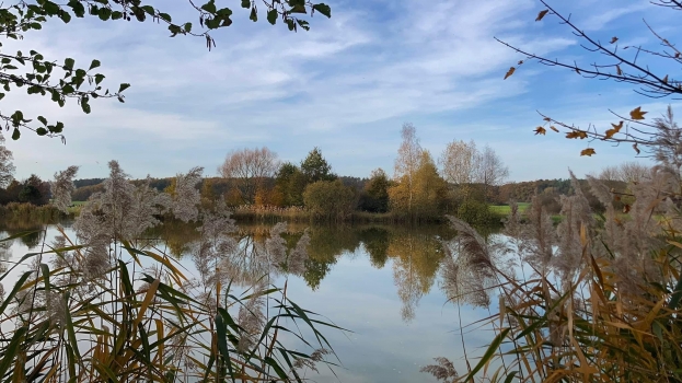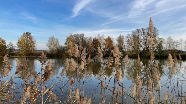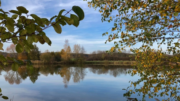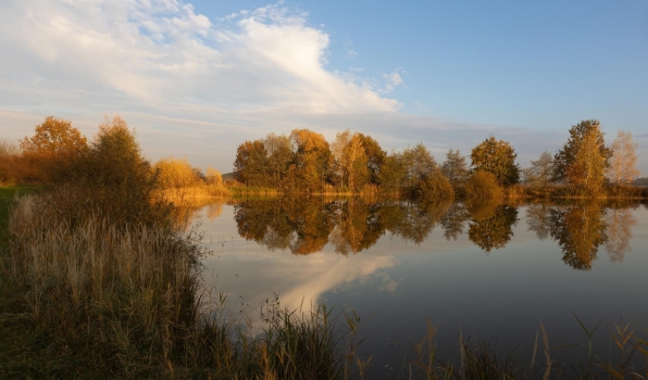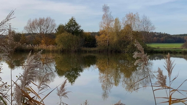 Nově vybudovaný ekologický rybník západně od města Třebechovice.