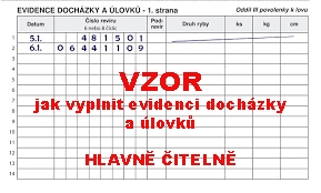 Po skončení platnosti povolenky již nebude muset vyplňovat "Sumář úlovků a docházek" a odevzdáte povolenku bez sumarizace úlovků a docházek. Nový tiskopis totiž tuto část úlovkového lístku určenou k sumarizaci již vůbec neobsahuje. Zpracování sumarizace za příslušný rok bude provedena následně zpracovatelem z jednotlivých docházek a to strojově. Zapisujte evidenci ČITELNĚ!